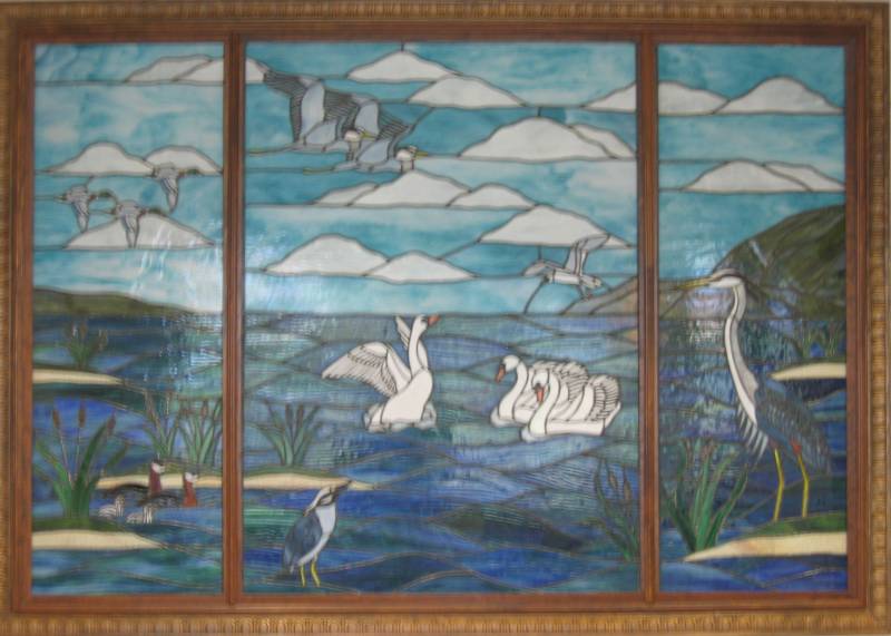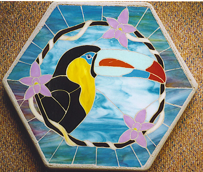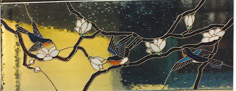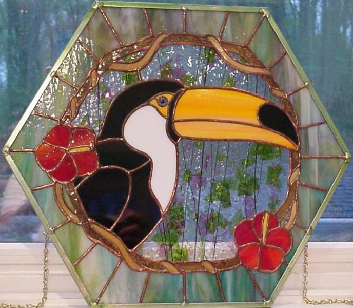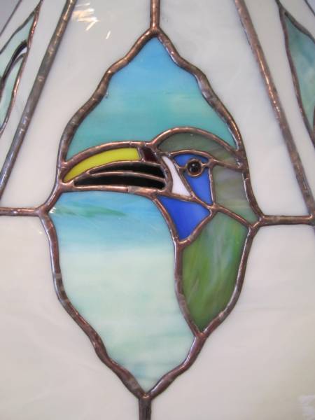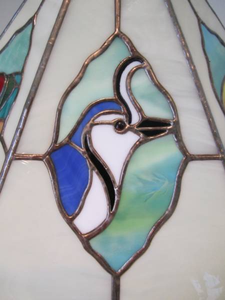 The bird panels for this lamp were created using the client's own photgraphs taken on a trip to Costa Rica